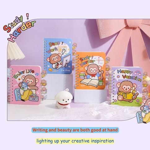 Each notebook features lined pages, a durable spiral binding, and comes with matching monkey-shaped sticky tabs for notes or bookmarks. Whether you’re taking study notes or planning your next holiday, this cute set has a design for every mood.